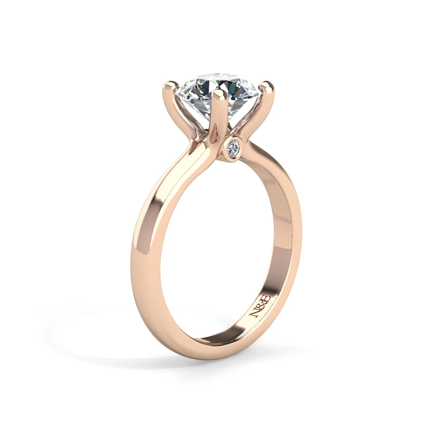 Open gallery setting solitaire engagement ring beautifully showcasing two small diamonds positioned elegantly beneath the center stone for added sparkle and sophistication.