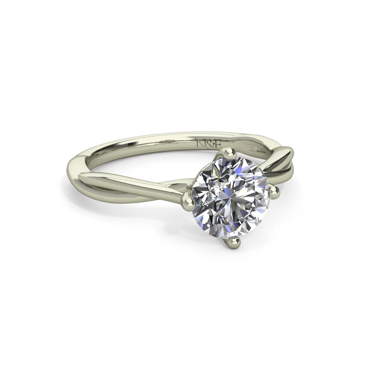 Classic four-prong setting solitaire engagement ring featuring a unique east-west bypass design with a twisted shank